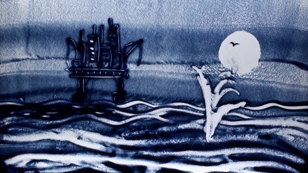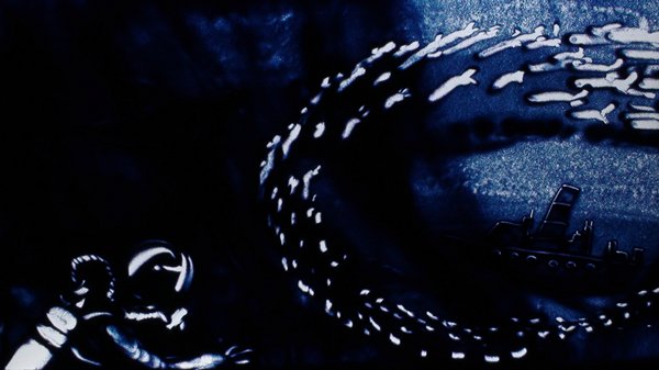 Pour la première fois en public, David Myriam a utilisé du sable bleu, qui convenait parfaitement à l’univers aquatique !